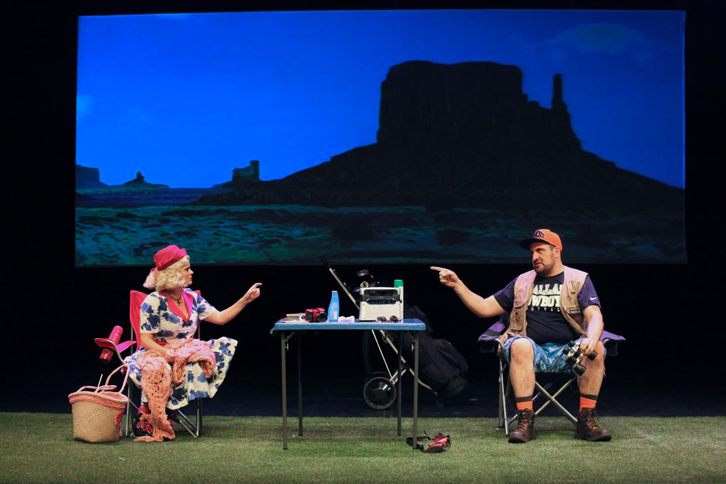 Arizona, a play written by Juan Carlos Rubio, discusses frontiers, migration, human stupidity, and the extent to which humans can be manipulated. The play is also a tragicomic portrait of the soul of two individuals lost in the desert of life. The playwright invents a world of voids, of lacks of communication between human beings and between countries, a picture of the absurdity we invent day after day when we activate our intellectual borders.