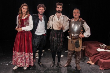 The play is based on new research into the over-mythologised personality of the protagonist, Cervantes. We tend to think of Cervantes as a literary figure, a bookworm, like Camilo José Cela, a vision implanted by the over-worn portrait of the author wearing a ruff and brandishing a quill. We know a few facts about Cervantes’ life, some odd pieces of the jigsaw, but these have not allowed us to build a complete and realistic picture of him.